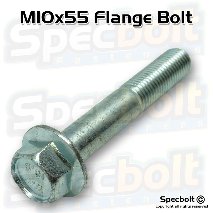 M10x55 Flange Bolt. 1.25 thread pitch. Zinc plated. 10.9 grade.