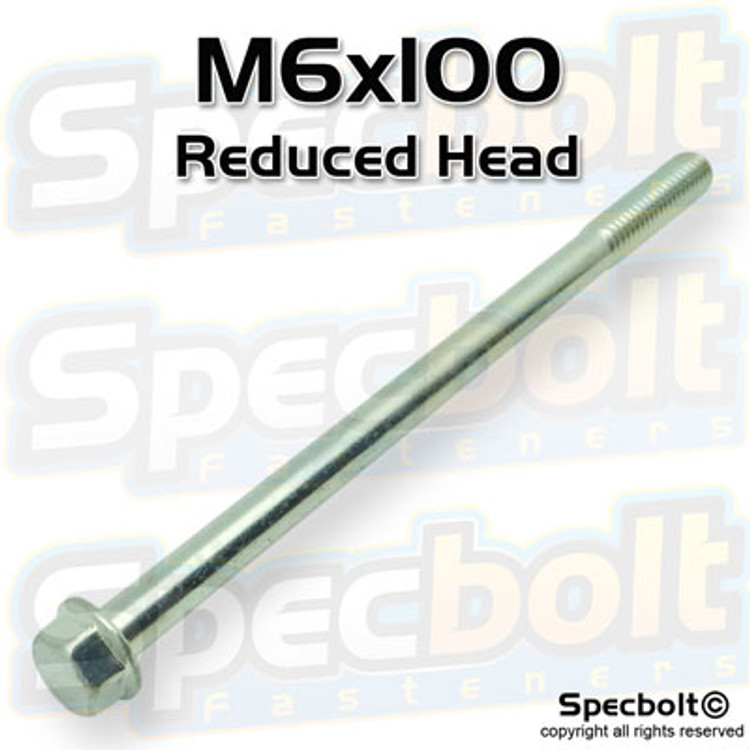 M6-1.0x100mm Flange Bolt with 8mm reduced head, zinc plated metric class 10.9 high carbon, heat treated steel. OEM factory fit and finish. Exceeds OEM Spec.