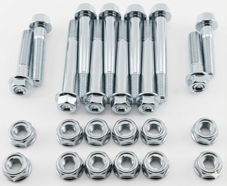 Honda 400EX FRONT SUSPENSION BOLT KIT fits all Honda 400EX models Designed to replace all your front suspension bolts and nuts with brand new high quality OEM type fasteners. This is a 24 piece kit. All high strength (Grade rated 10.9), heat treated and zinc plated and designed specifically to replace front suspension bolts on Honda 400EX Includes: 8 A-arm bolts 2 upper shock bolts 2 lower shock bolts 12 locking flange nuts Specbolt's suspension kits are designed to work with all shocks and A-arms....stock or aftermarket. They meet and exceed OEM specs. You can assure that these are very high quality and will last you the lifetime of you quad!!!Replaces OEM: 90183-HC0-770, 90305-HC0-770, 96400-10040-00, 96400-10050-00