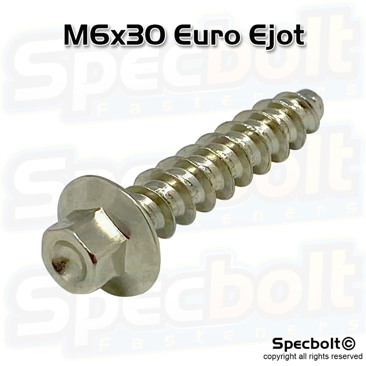 Euro Ejot Screw for KTM & Husqvarna. Uses include Radiator Shrouds and Bodywork Plastics. M6x30 Nickel Plated OEM match screw replaces plastic screw part# 0017060305