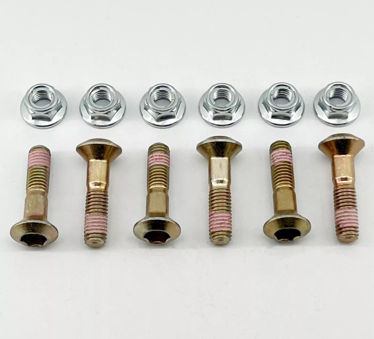 Socket Head M8x34 Gold Zinc Plated Sprocket Bolt Kit with medium strength loctite on the threaded portion. Complete with fuji locking flange nuts.